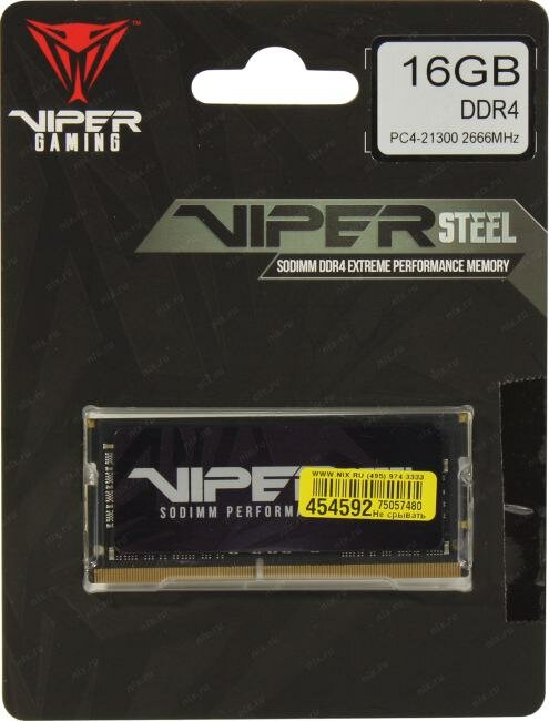 Оперативная память Patriot Viper Steel PVS416G266C8S DDR4 - 16ГБ 2666МГц, для ноутбуков (SO-DIMM), Ret