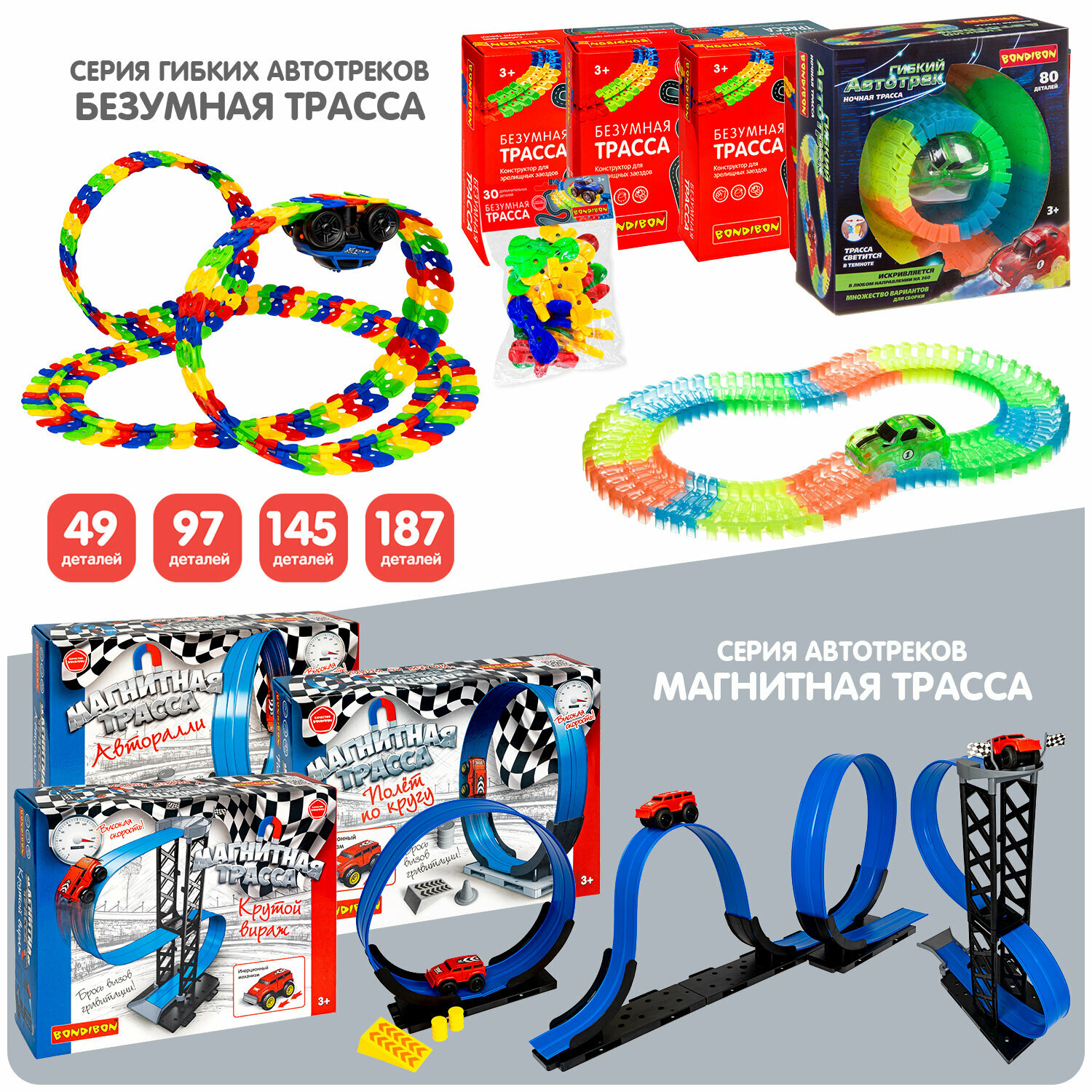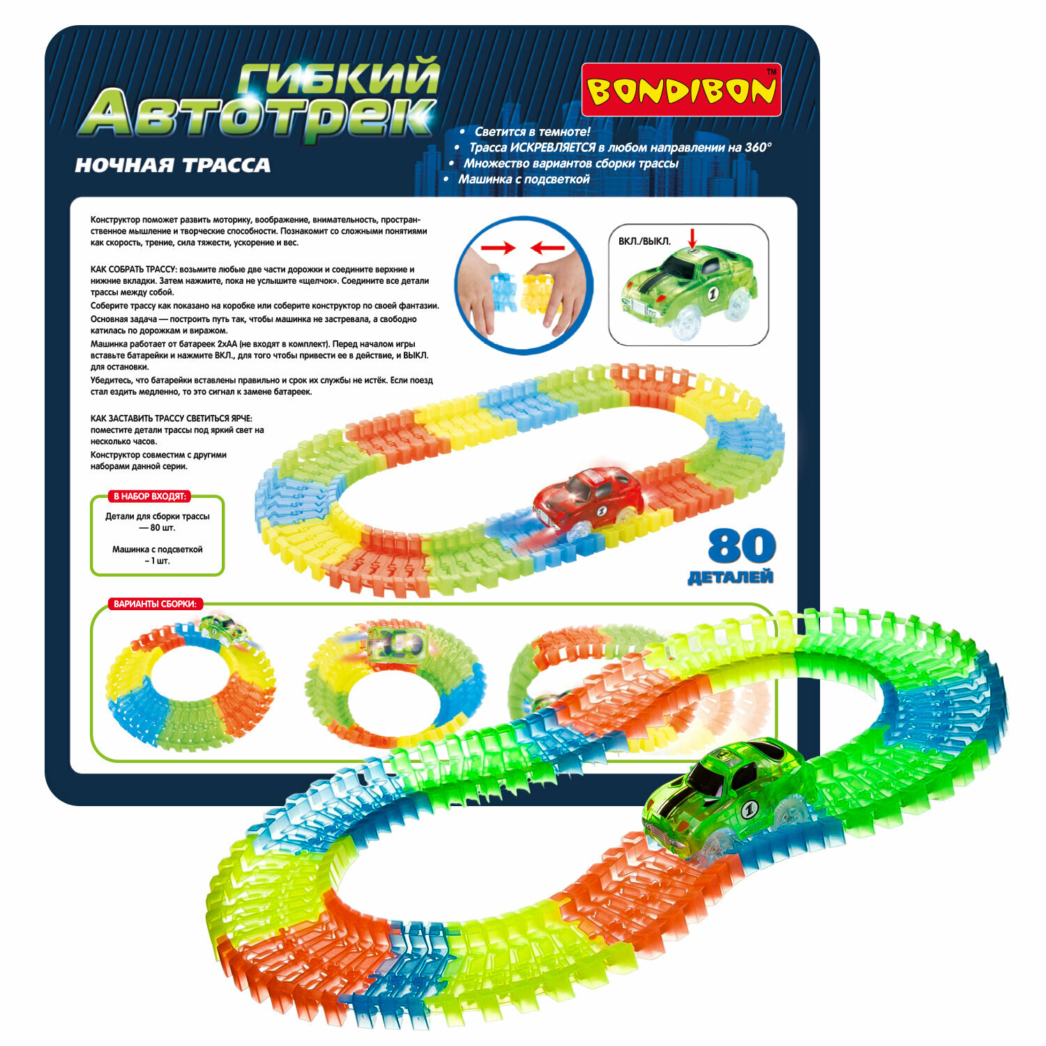 Гибкий автотрек Bondibon "Ночная трасса", светящаяся трасса и машинка, 80 деталей (ВВ4041)