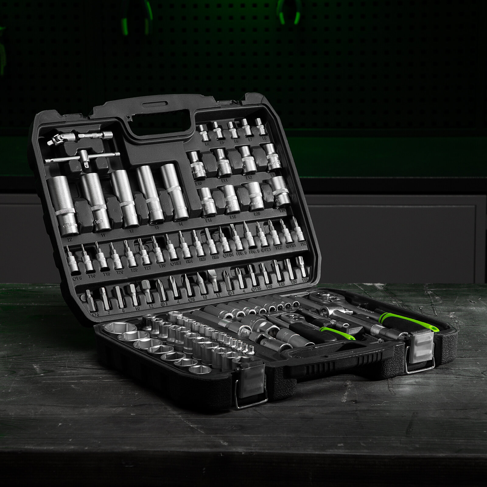 | Плюсы: | 94 инструмента в наборе и это круто! Рад поделиться своим мнением кому это нужно))) выдерживают любые работы, сталь высокого качества, есть покрытие от ржавчины. Трещетка класс |