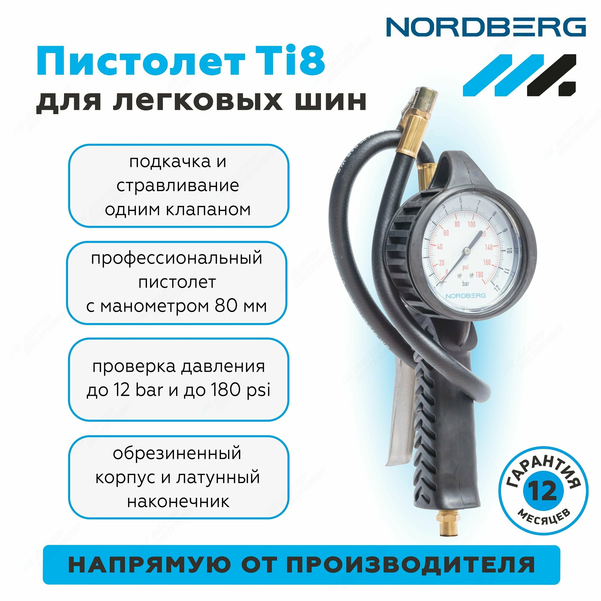 NORDBERG TI8 Пистолет Профессиональный Для Подкачки Колес, Обрезиненный NORDBERG Ti8