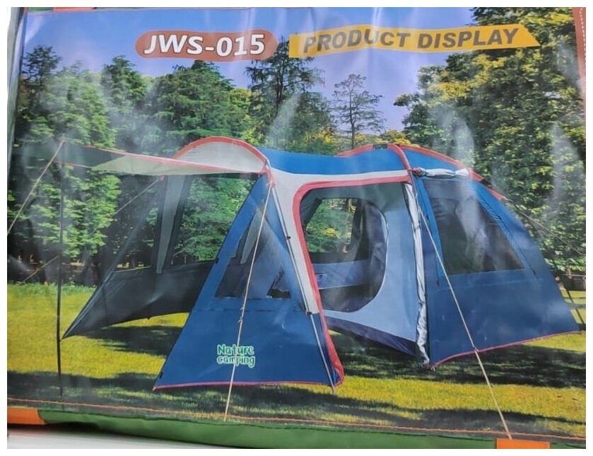 | Дополнительная информация | Просторная палатка с водостойким тамбуром с 2 выходами. Выставляется навес на металлических высоких опорах; количество окон: 2; количество оттяжек: 8 |