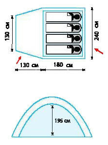 | Габариты внутренней палатки(ДxШxВ) | 225x240x195 cм |