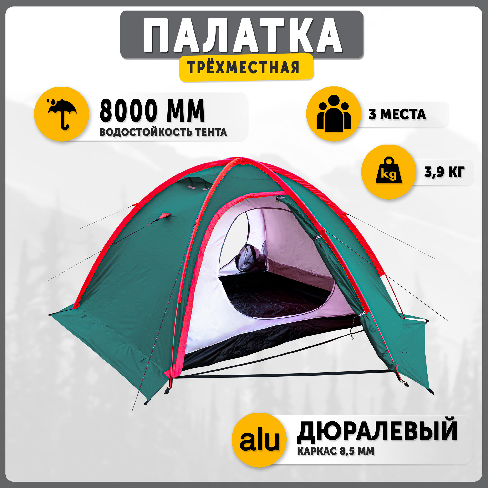 Палатка туристическая экстремальная Talberg SPACE PRO 3 , зелёный интересное:
