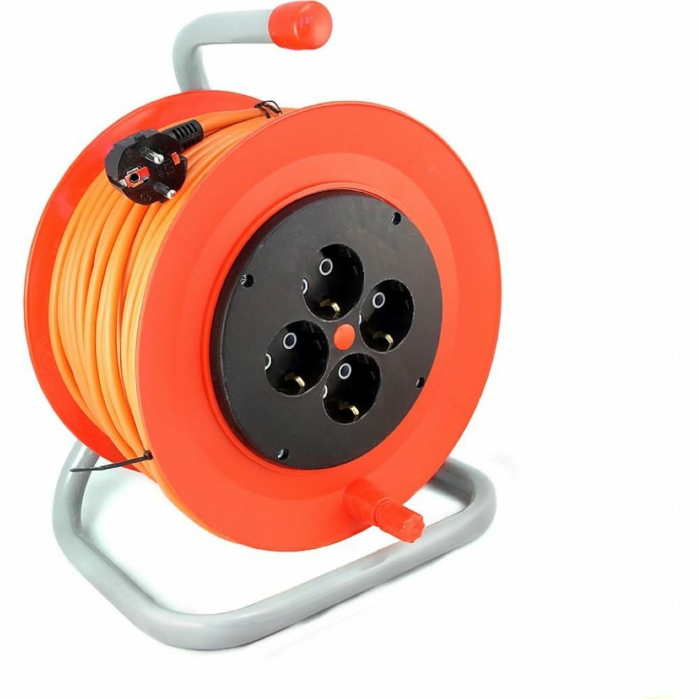 Удлинитель силовой на катушке Lux Electric LUX К4-Е-30 ПВС 3x0.75 30м, 10А, 4 встр. розетки с з/к 24130