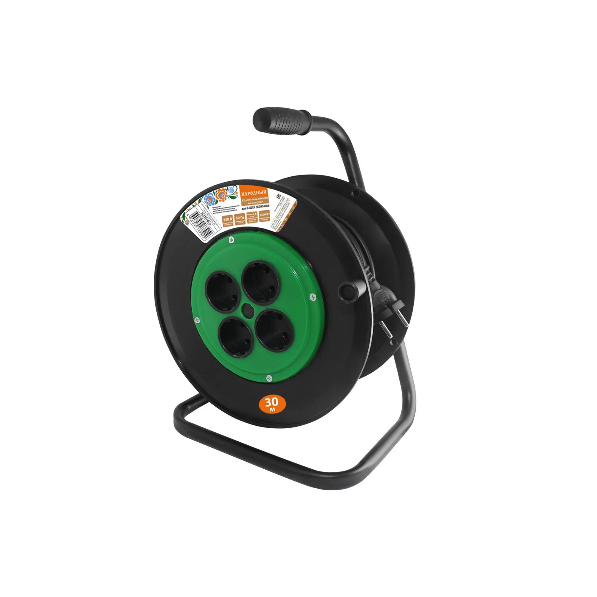 Удлинитель на катушке силовой народный 4 гнезда ПВС 1300 Вт б/з, 30м