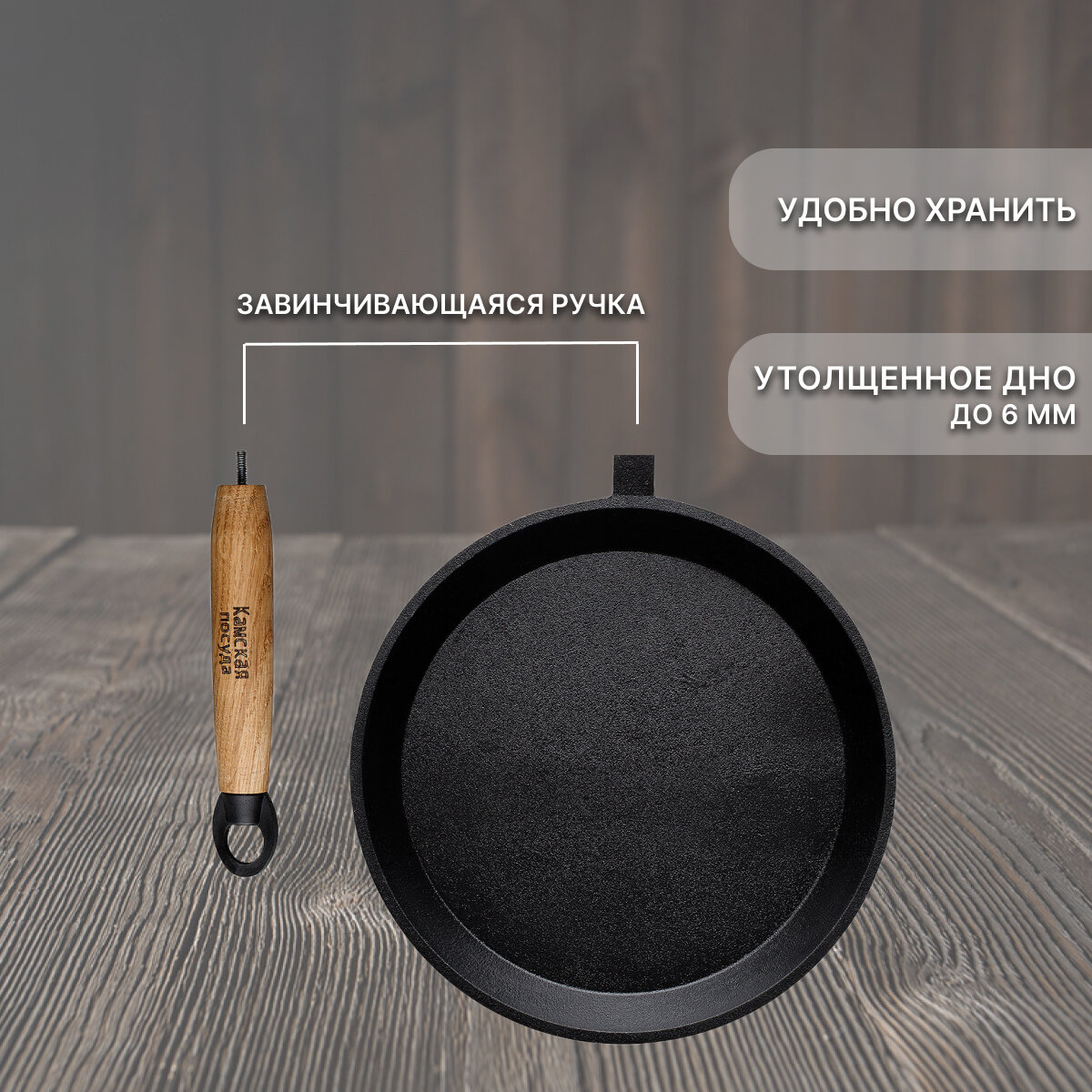 Сковорода для блинов Камская посуда , 22 см, без крышки, со съемной ручкой