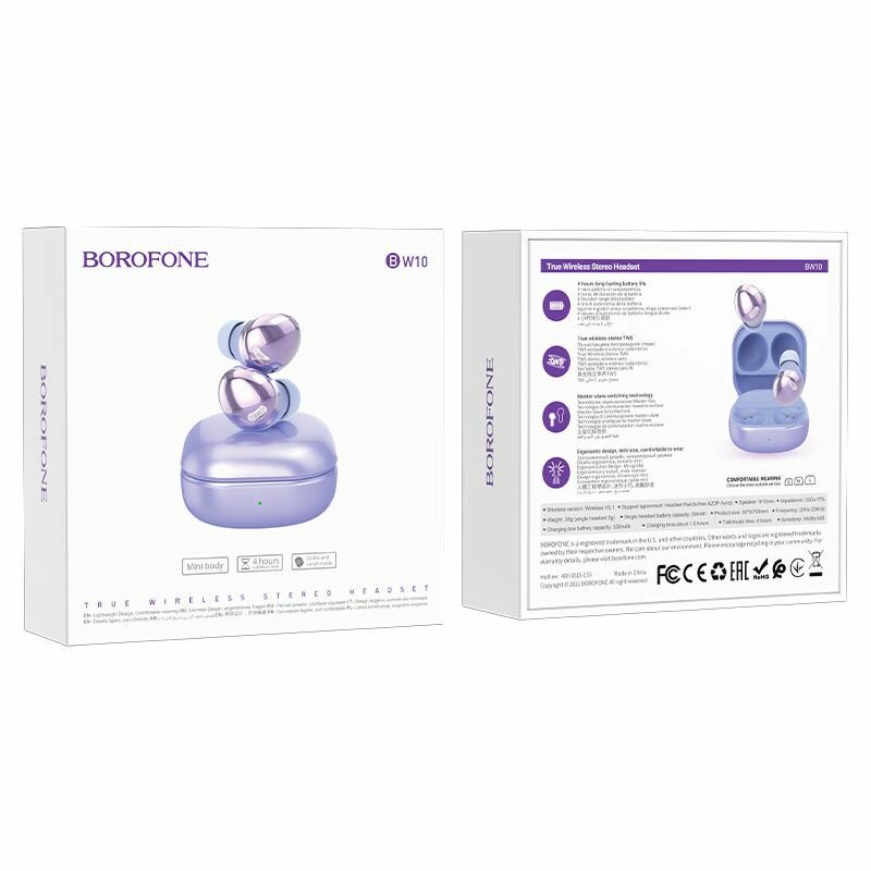 Наушники внутриканальные Borofone BW10, Magic Rhyme, пластик, силикон, микрофон, bluetooth 5.1, цвет: фиолетовый