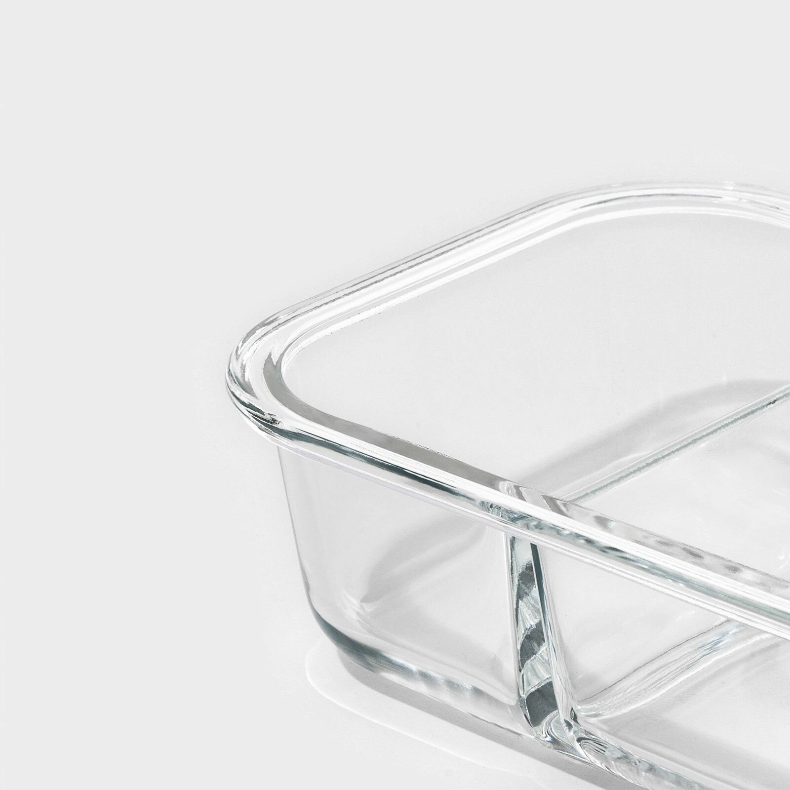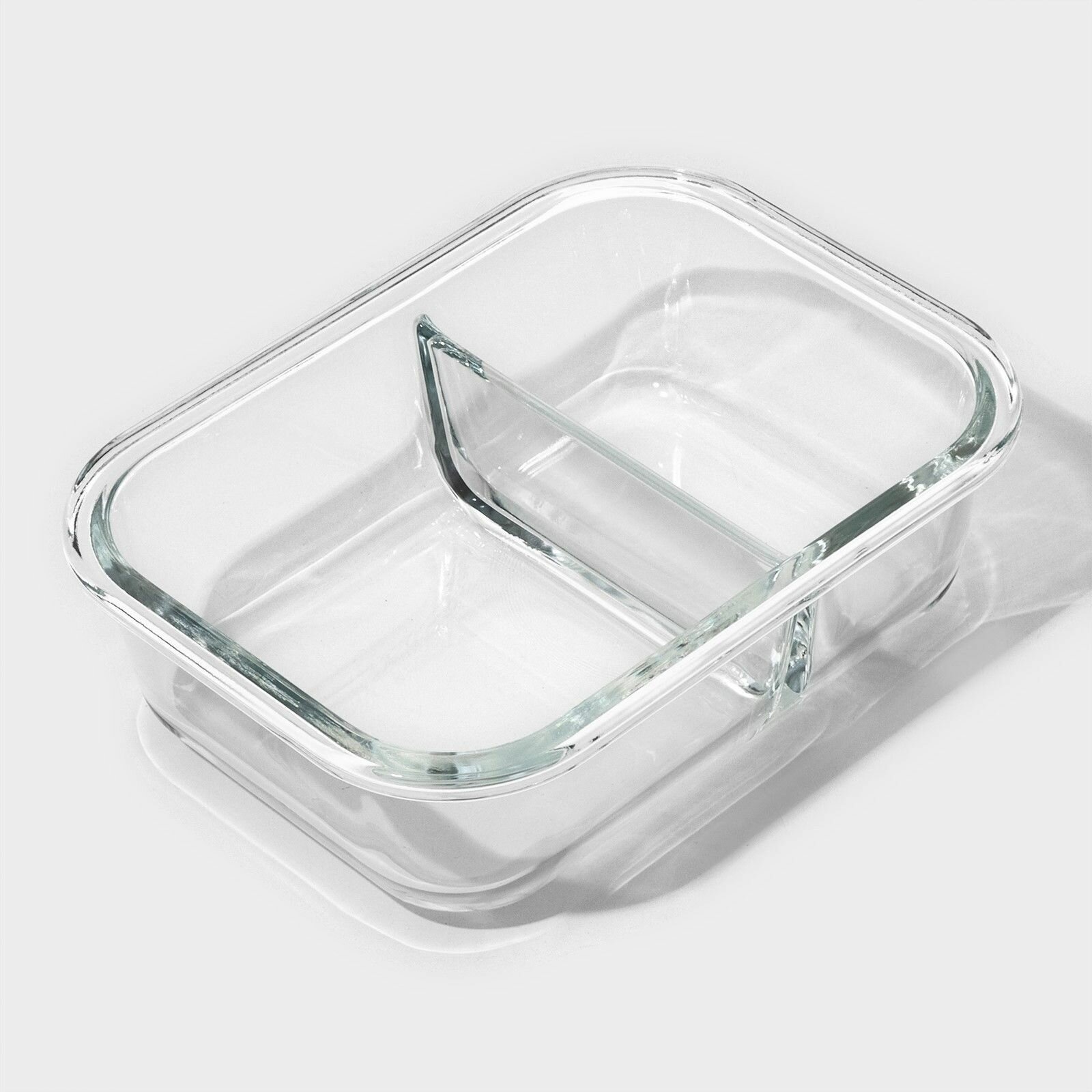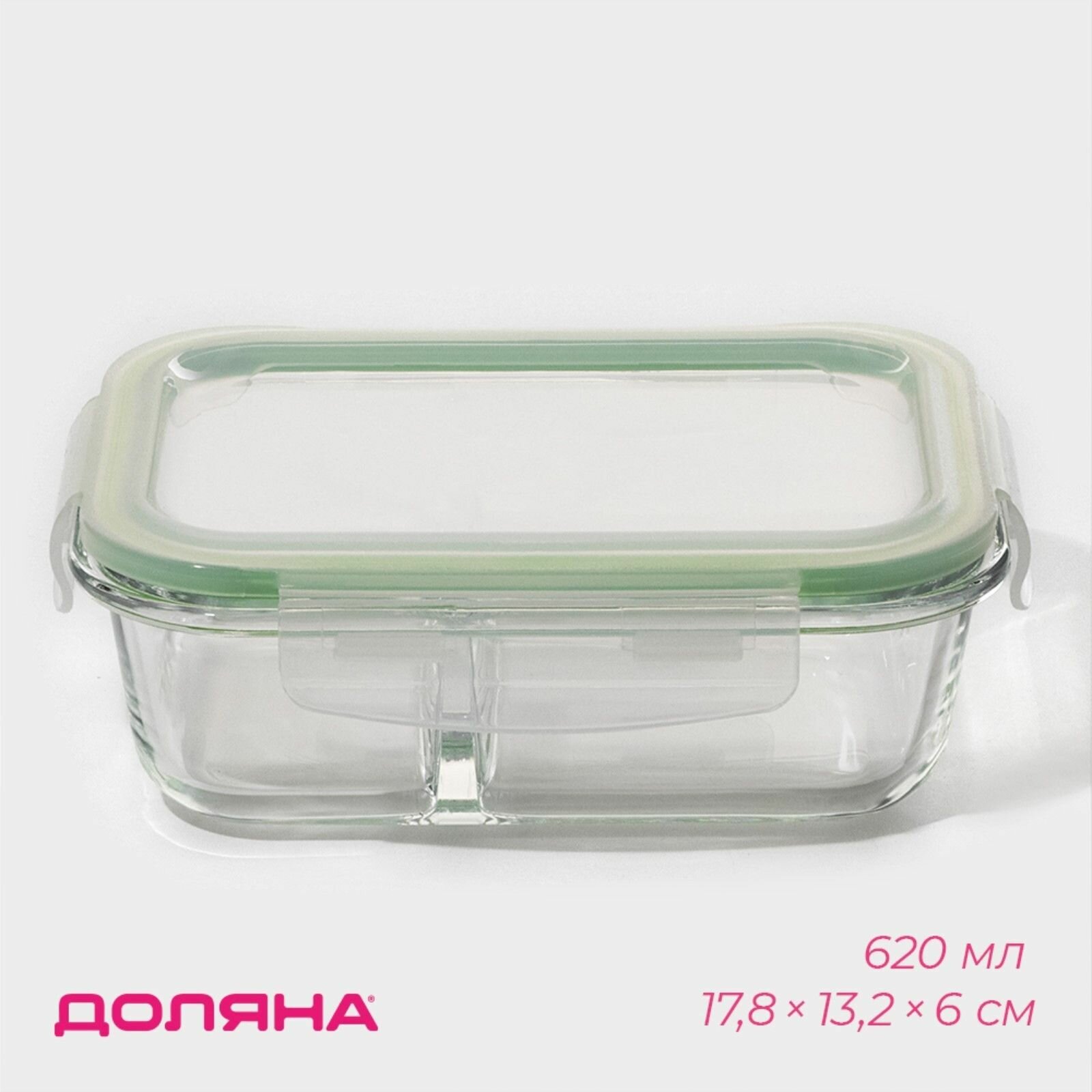 Контейнер стеклянный для еды, с крышкой Доляна "Клик", двухсекционный, объем 0,62 л, размер 17,8x13,2x6 см