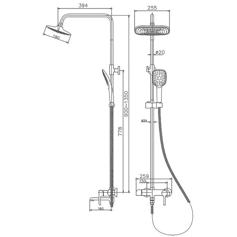| Комплектация | с душевой лейкой / с шлангом для душа / с кронштейном / верхний душ / душевая стойка / Смеситель |