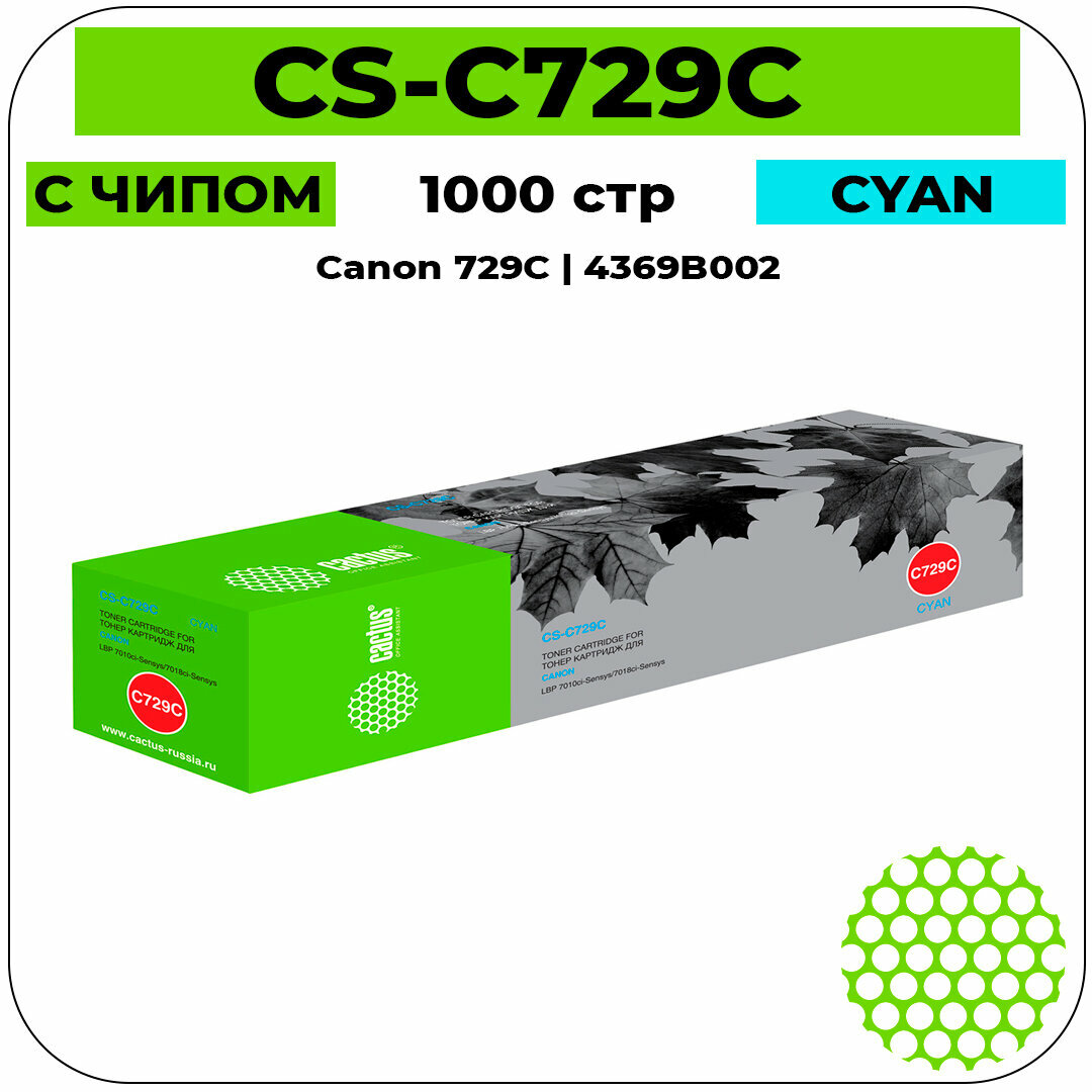 Купить Картридж лазерный Cactus CS-C729C 729 C голубой (1000стр.) для Canon i-SENSYS LBP-7010C/ LBP-7018C