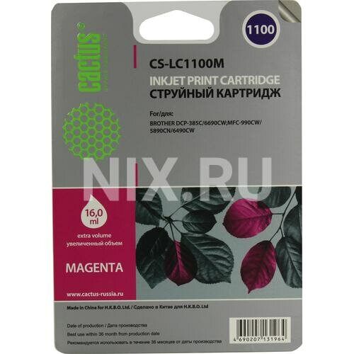 Картридж струйный Cactus CS-LC1100M пурпурный (16мл) для Brother DCP-385c/6690cw/MFC-990/5890/5895/6490