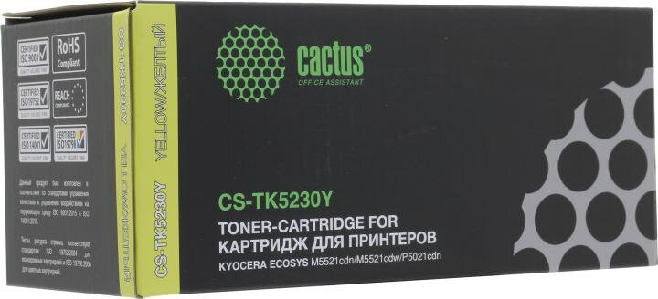 Картридж Cactus CS-TK5230Y желтый, для KYOCERA Ecosys M5521cdn/M5521cdw/P5021cdn/P5021cdw, ресурс до 2600 страниц