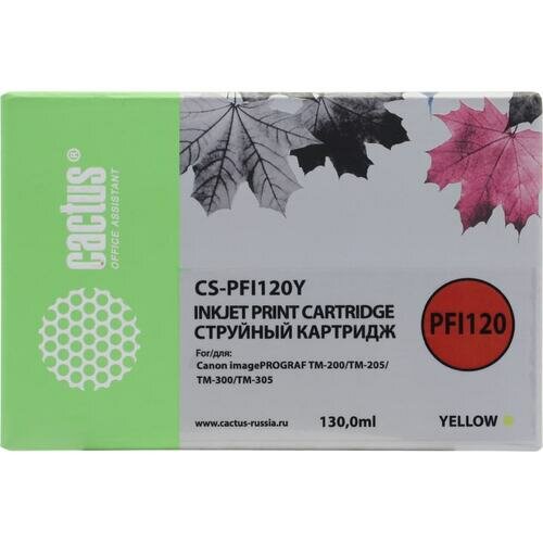Картридж струйный Cactus Cs-pfi120y желтый (130мл) для Canon imagePROGRAF TM-200/TM-205/TM-300/TM-30 .