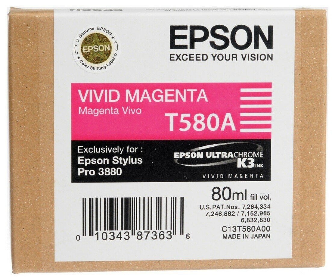 Картридж струйный Epson T580A C13T580A00 ярко-пурпурный оригинальный 400 стр, 80 мл.