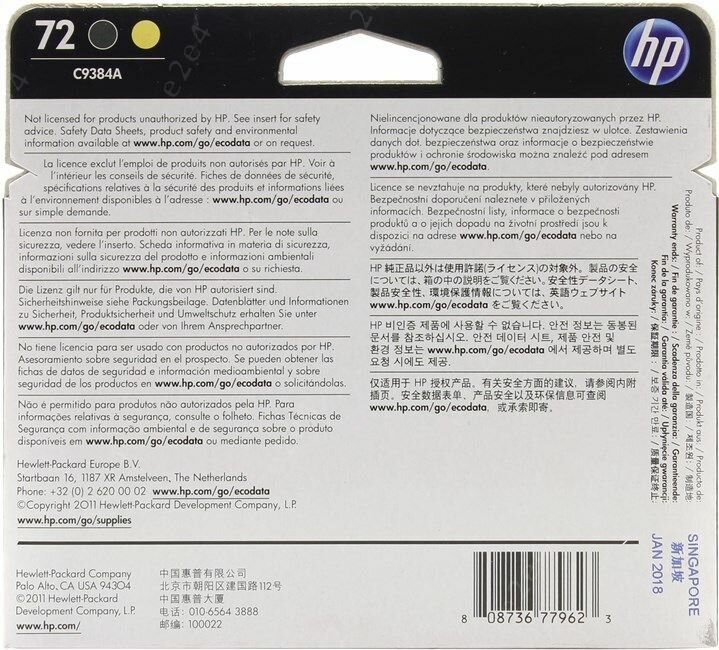 Оригинальная печатающая головка Hp C9384A (№72) (матовая черная и желтая)