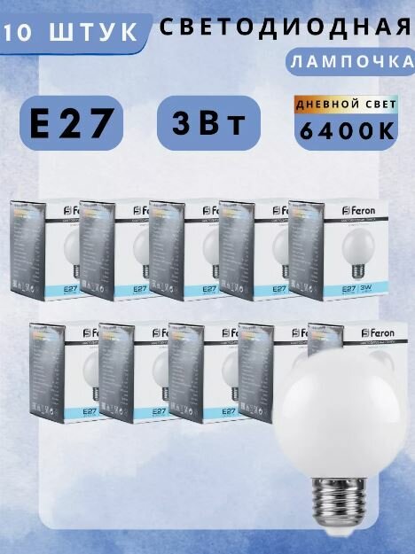 Лампа светодиодная Feron LB-371 Шар E27 3W 6400K матовый 25902,10 штук в комплекте