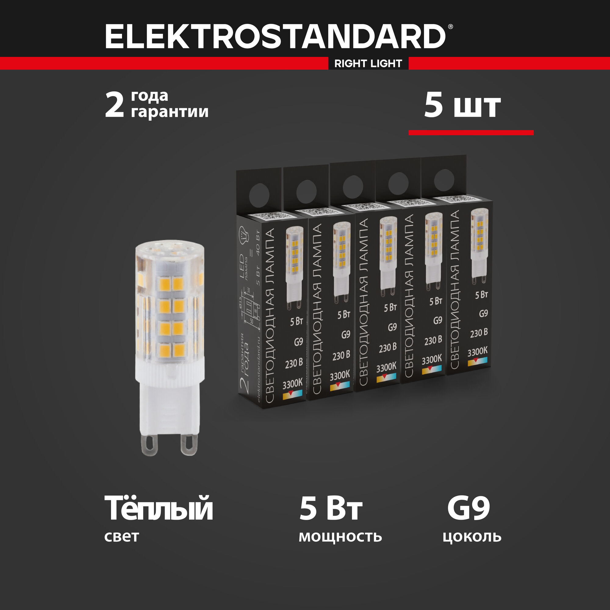 Набор ламп G9 Elektrostandard BLG908, 5 Вт, 220В, 3300K, JCD, 5 шт.