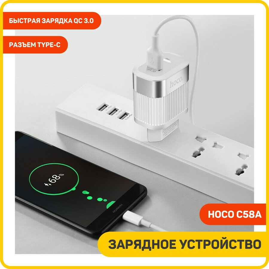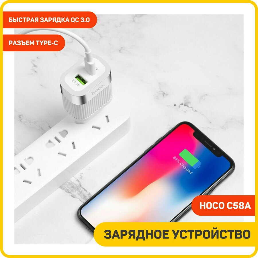 СЗУ HOCO C58A Prominent 1xUSB, 1xUSB-C, 3А, PD20W, QC3.0 (белый)