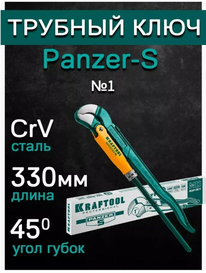 KRAFTOOL PANZER-S, №1, ключ трубный, изогнутые губки 2733-10_z02