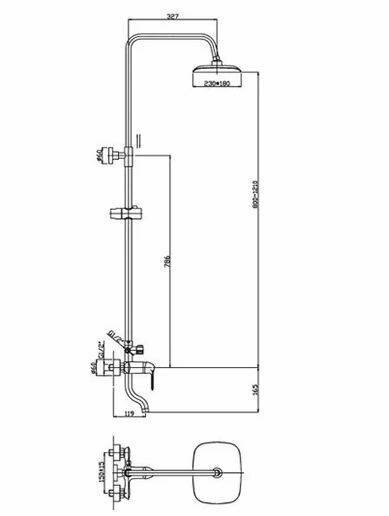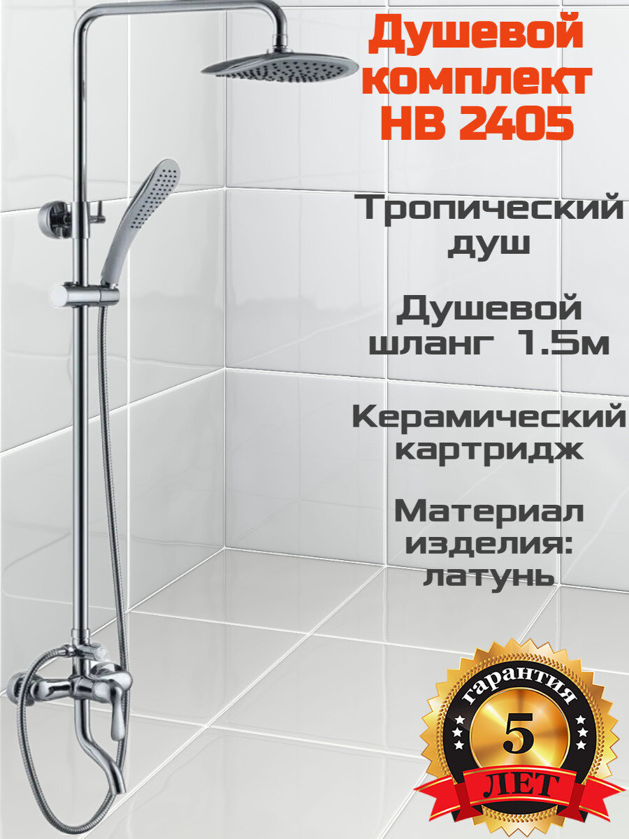 | Дополнительная информация | с верхним, тропическим душем, смесителем и ручной лейкой, латунь, хром |