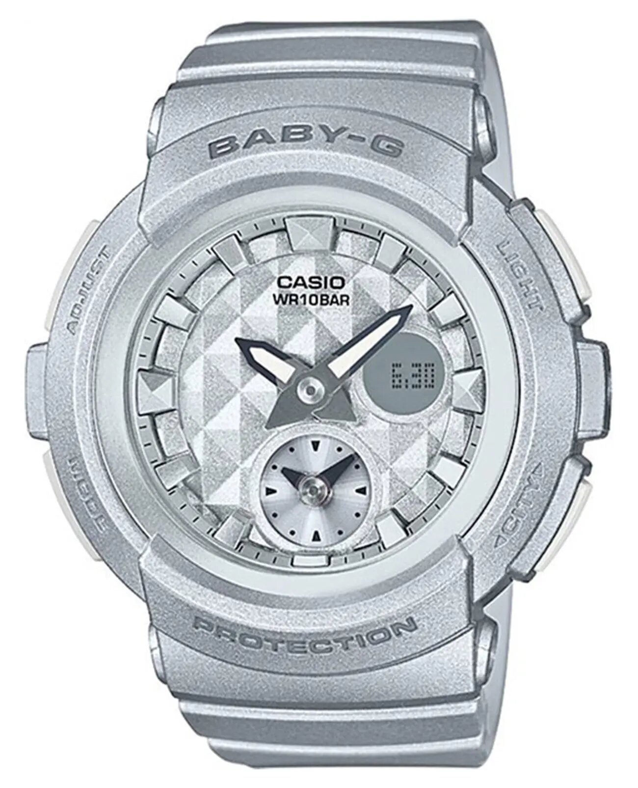 Купить Наручные часы CASIO BGA-195-8A женские, кварцевые, будильник, хронограф, секундомер, таймер обратного отсчета, водонепроницаемые, противоударные, подсветка стрелок, подсветка дисплея, серебряный