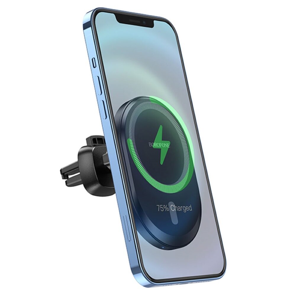 Автодержатель универсальный Borofone BH201, магнитный в воздуховод, беспроводная зарядка 15W, черный