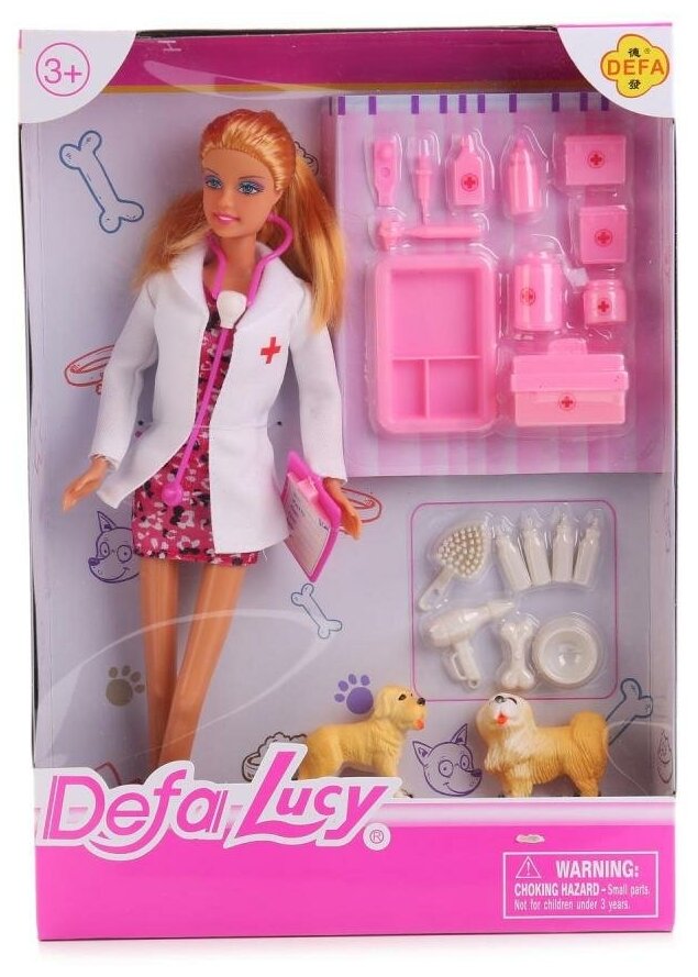 Купить Кукла DEFA Lucy "Мама ветеринар" (2 собаки, аксессуары) (8346)