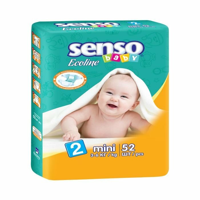 Подгузники Senso Baby Ecoline, размер 2(3-6 кг),1 уп.52 шт.