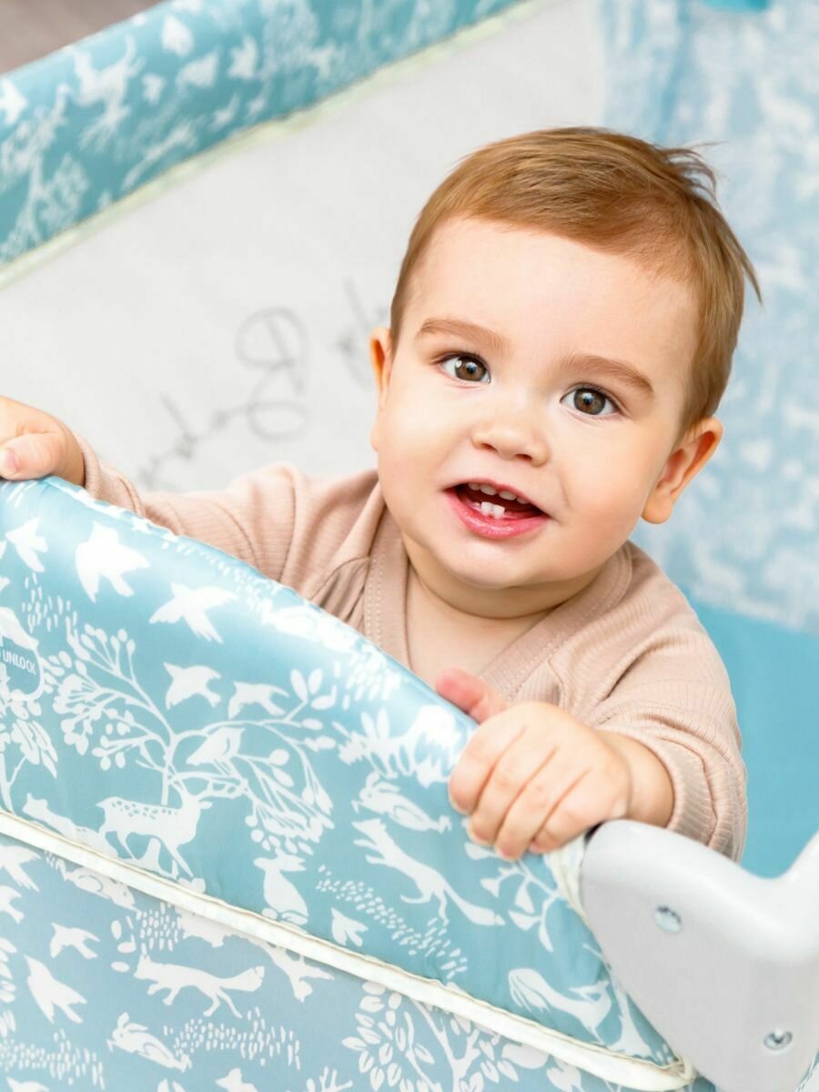 Манеж кровать AmaroBaby Happy Place (Forest), голубой интересное: