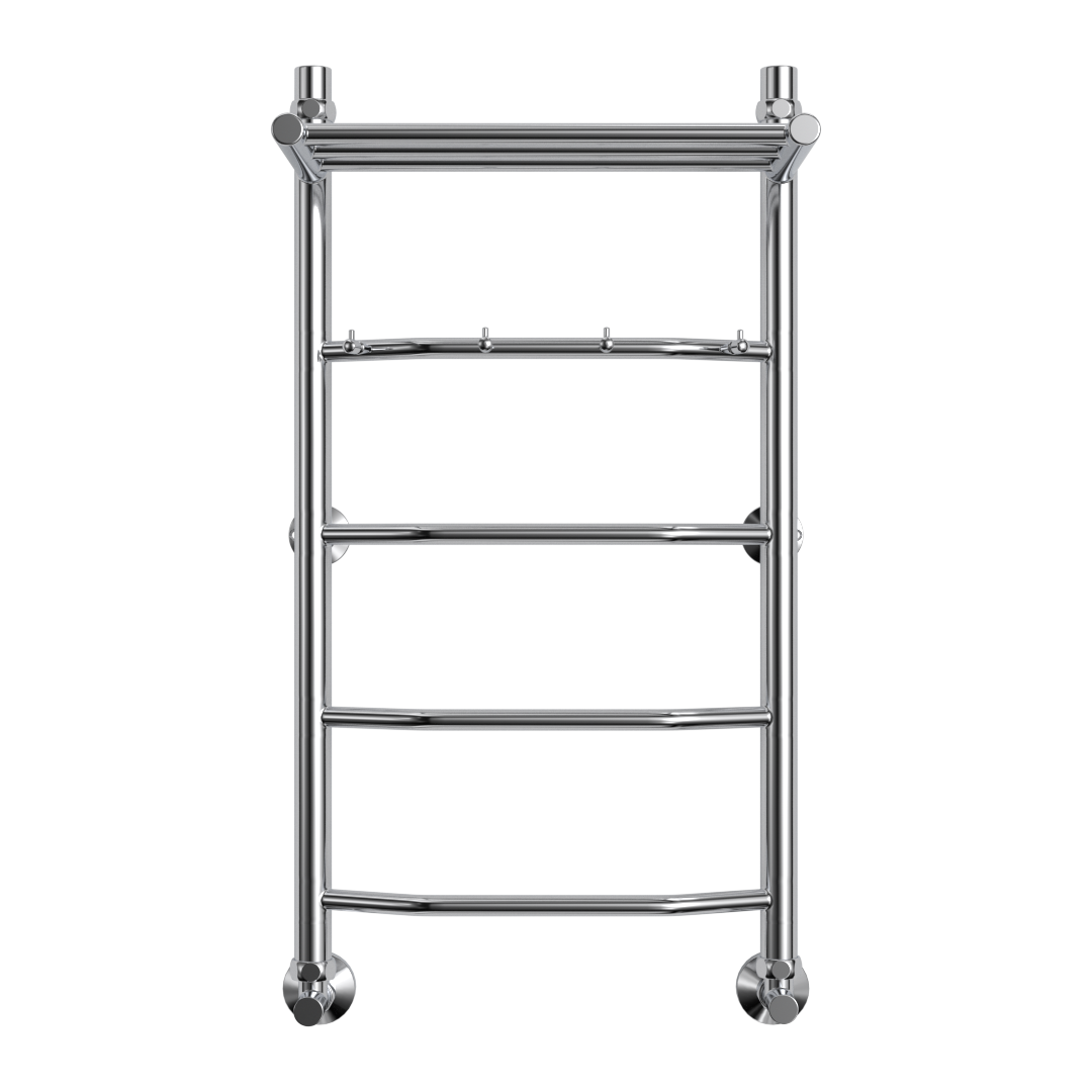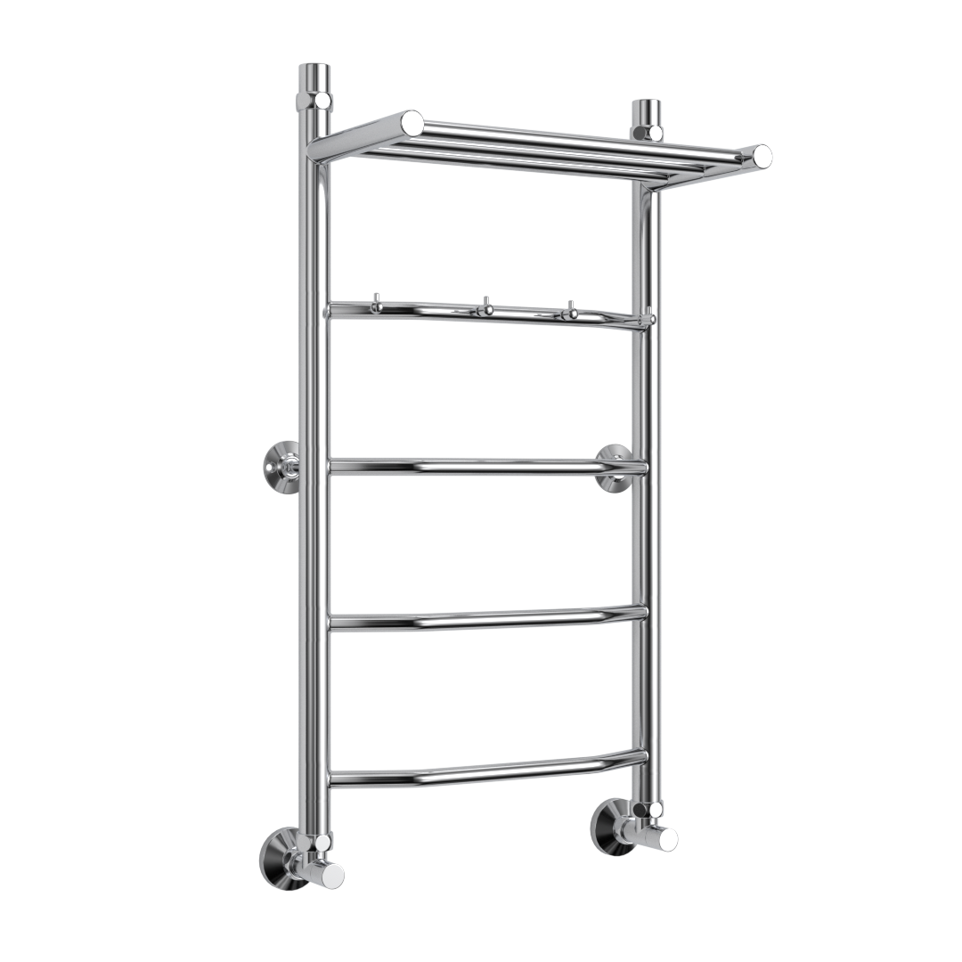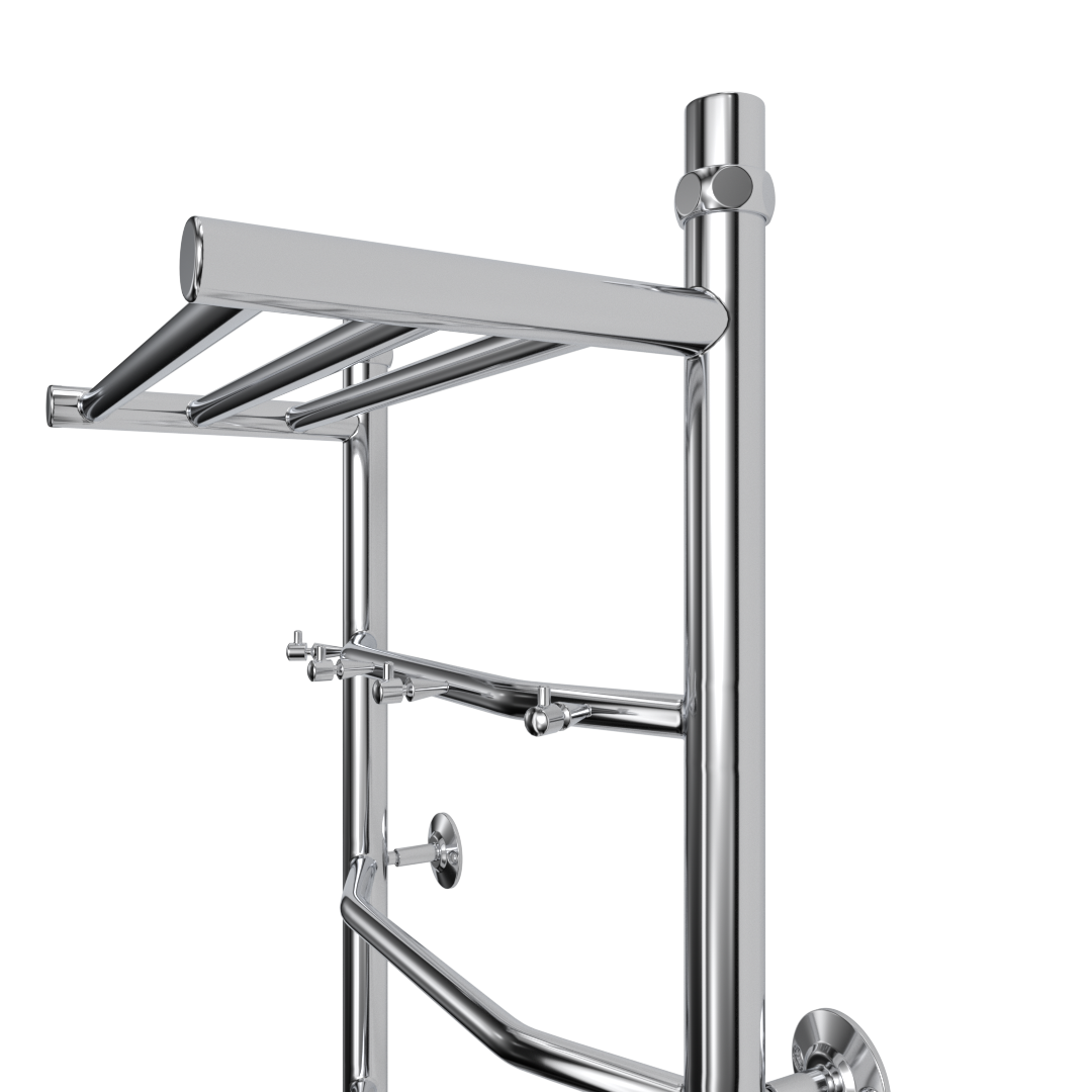 Водяной полотенцесушитель юрма модель "E1сп" 60/50см из нержавеющей стали с полкой и крючками