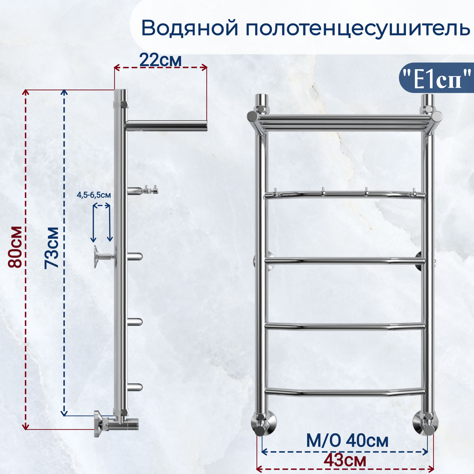 Водяной полотенцесушитель «юрма» модель E1сп размер 80/50