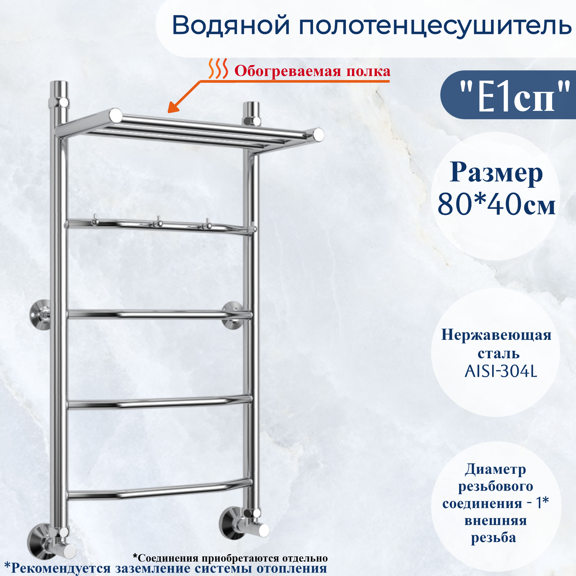 СохранитьВодяной полотенцесушитель юрма "E1сп" 80/40см из нержавеющей стали с полкой и крючками интересное: