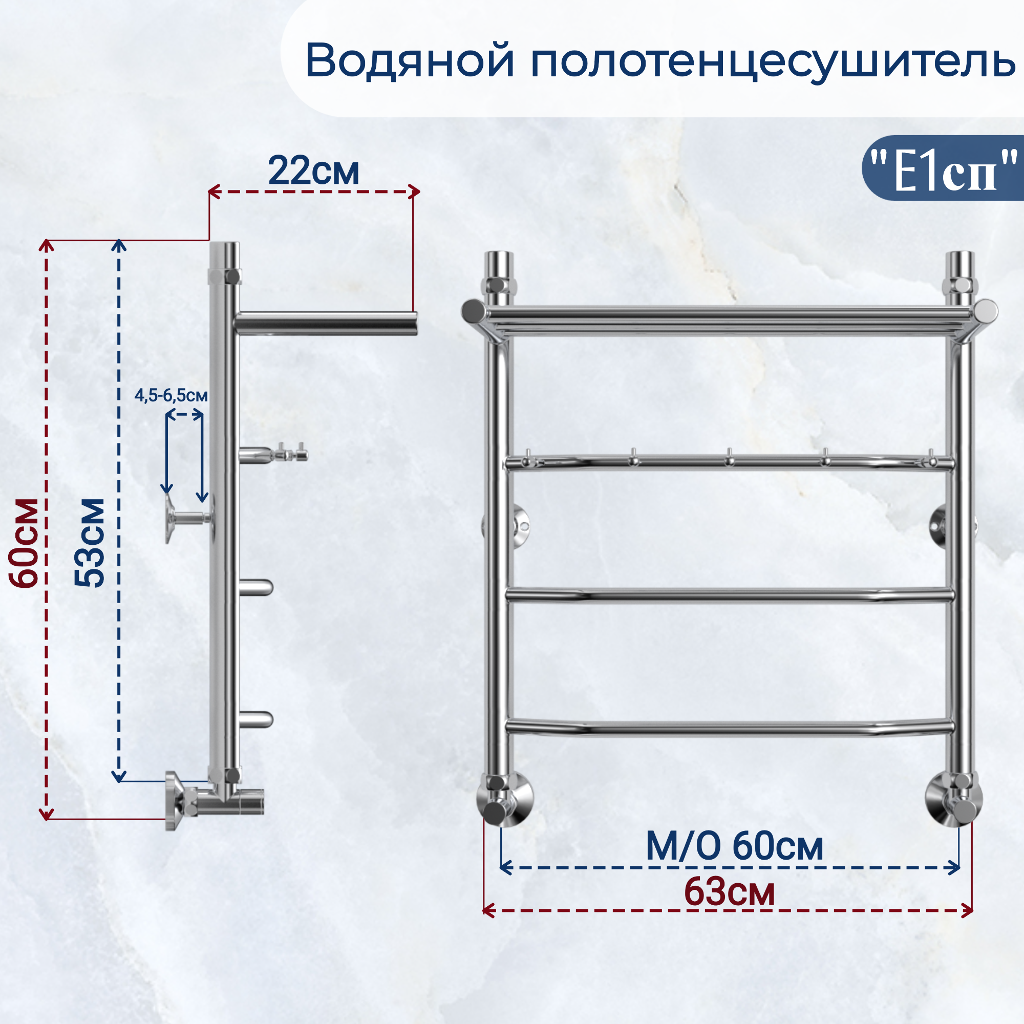 Водяной полотенцесушитель юрма модель "E1сп" 60/50см из нержавеющей стали с полкой и крючками