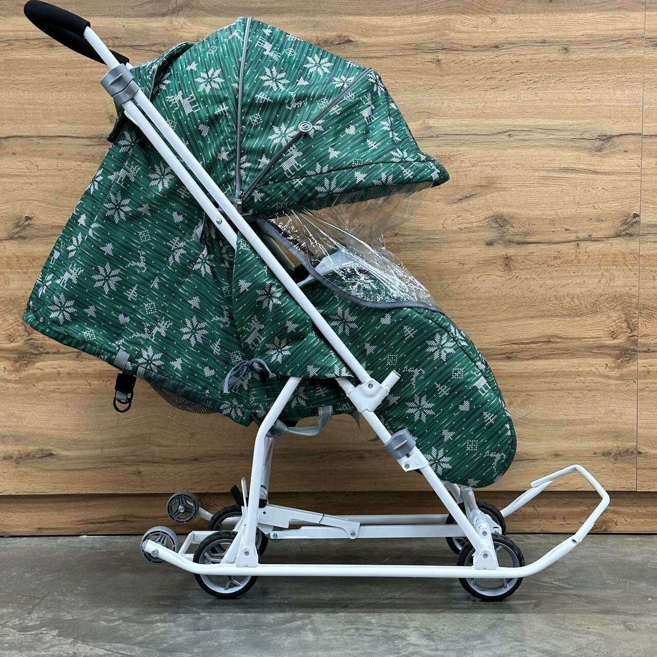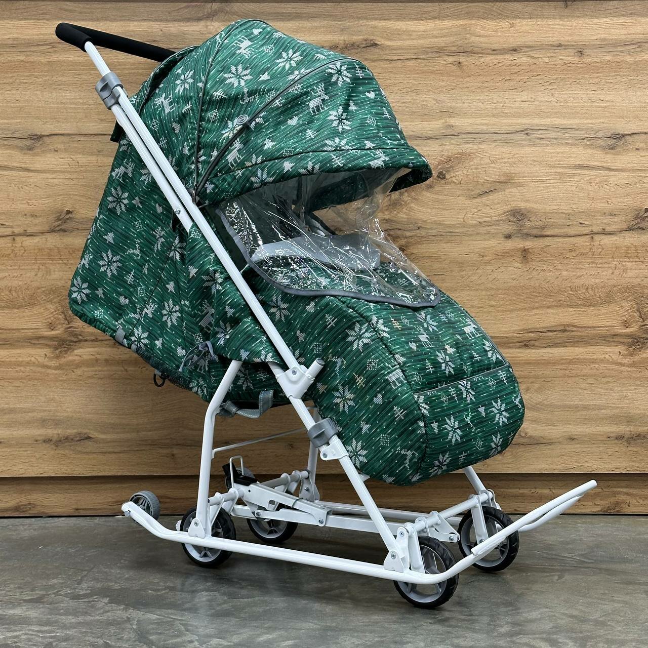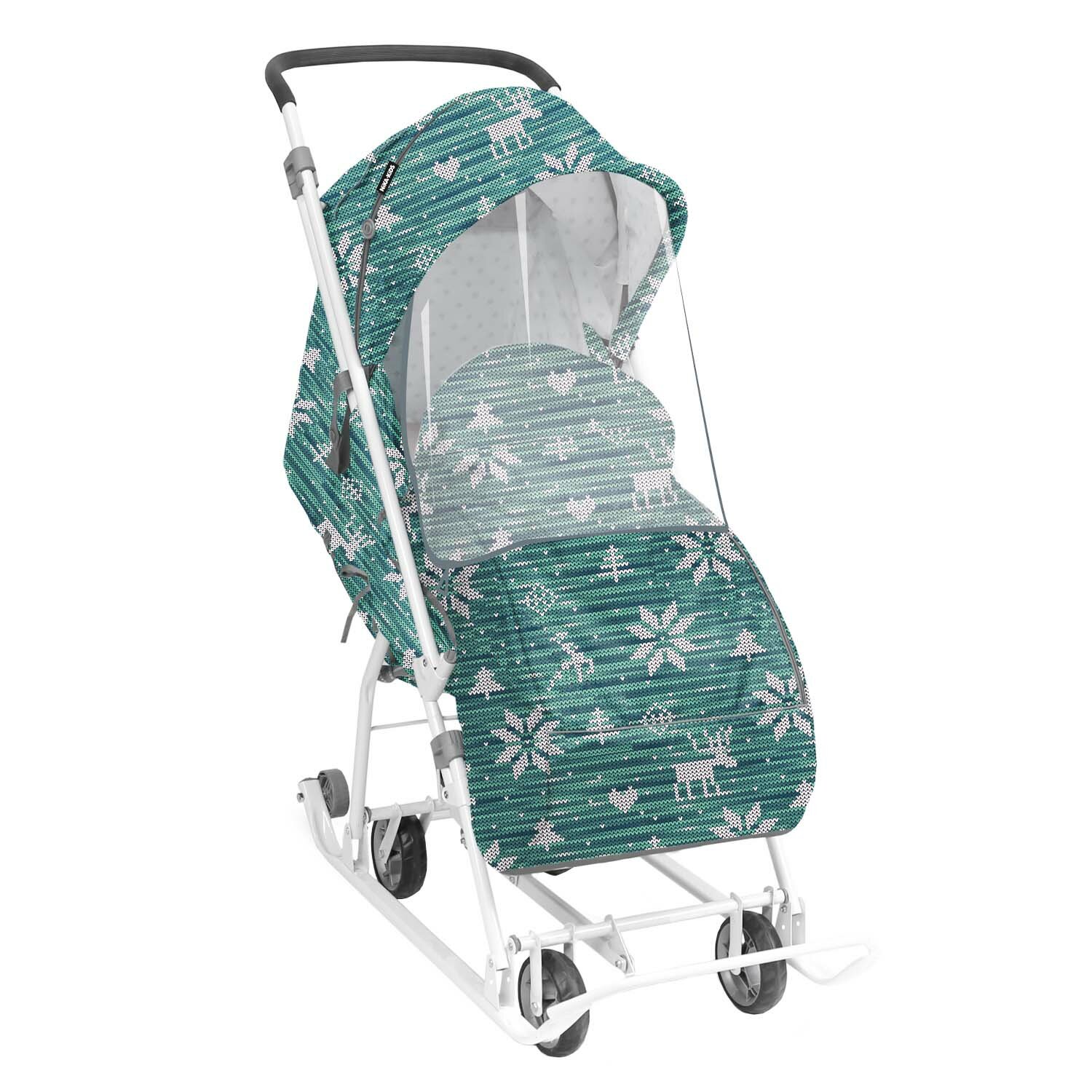 Санки-коляска Наши детки 3-1К/6, с перекидной ручкой, принт Скандинавский зеленый