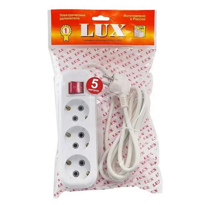 Сетевой удлинитель LUX ELECTRIC LUX У3-О-05, 3 розетки, 5 метров