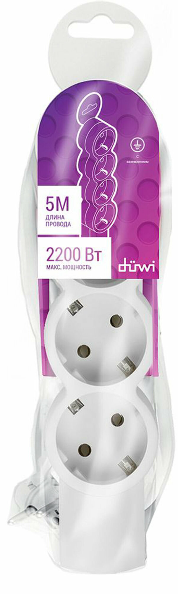Удлинитель Duwi 4 гнезда без выключателя с заземлением 5м 2200Вт 10А 32013 7