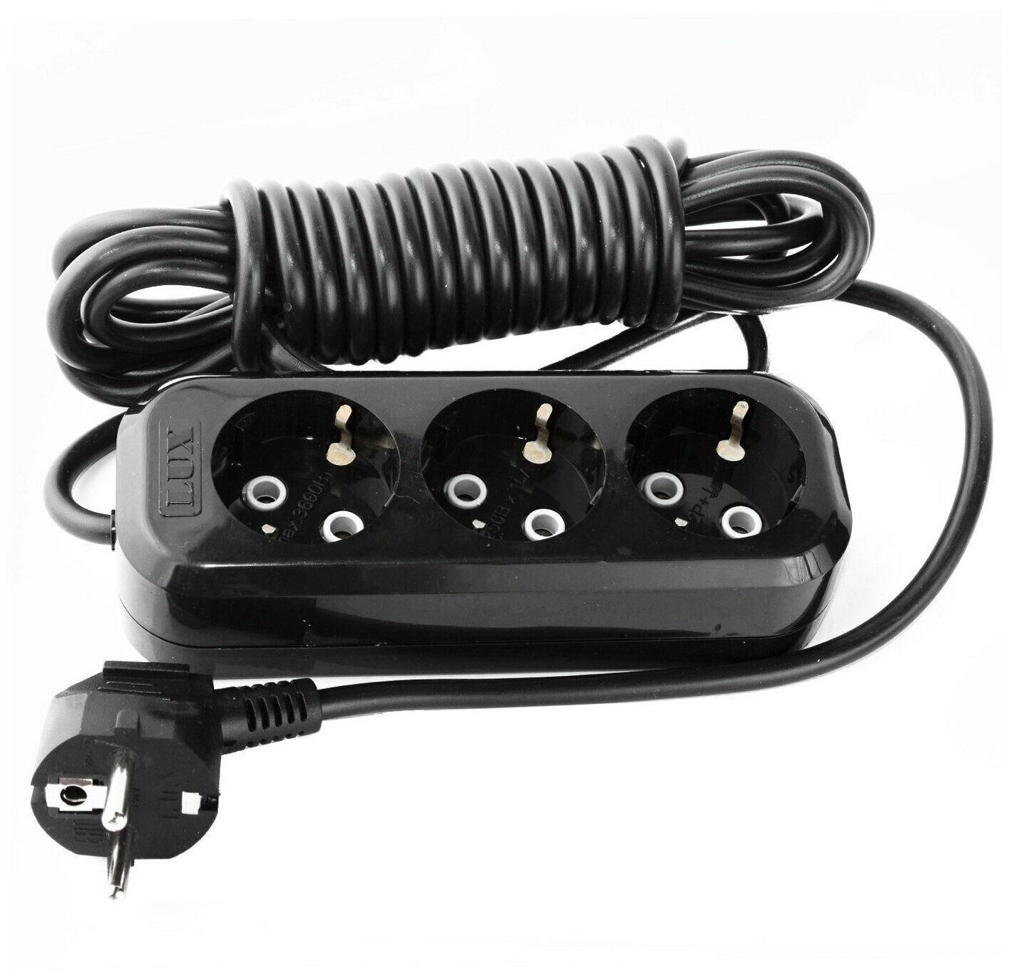 Удлинитель сетевой Lux Premium 3X, 3м, черный, 16А, 3500Вт, с заземлением и защитой от короткого замыкания