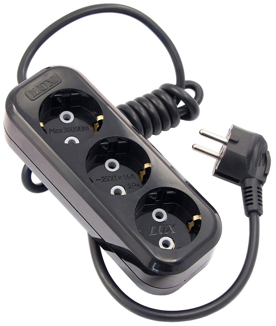 Сетевой удлинитель LUX ELECTRIC LUX У3-Е-03 3-местный с з/к, 250В 16А, 3м черный