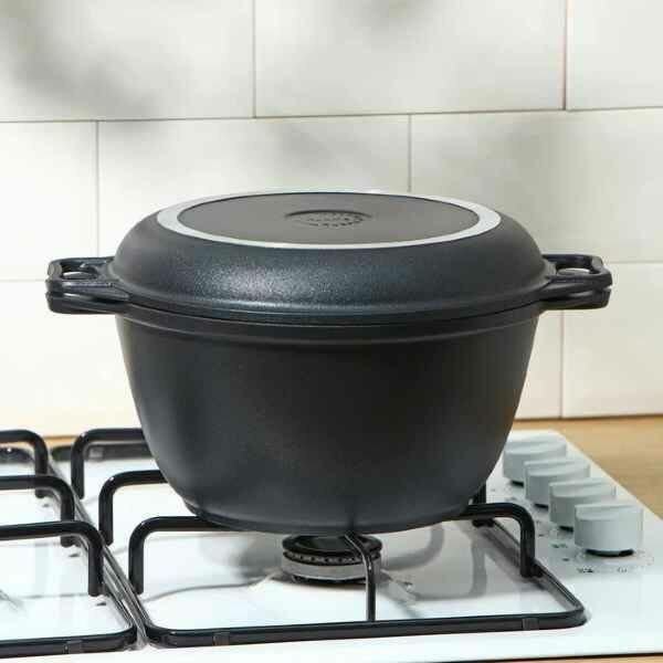 Казан для плова 3 литра "Темный мрамор" крышка-сковорода, антипригарное покрытие/ Кукмор интересное: