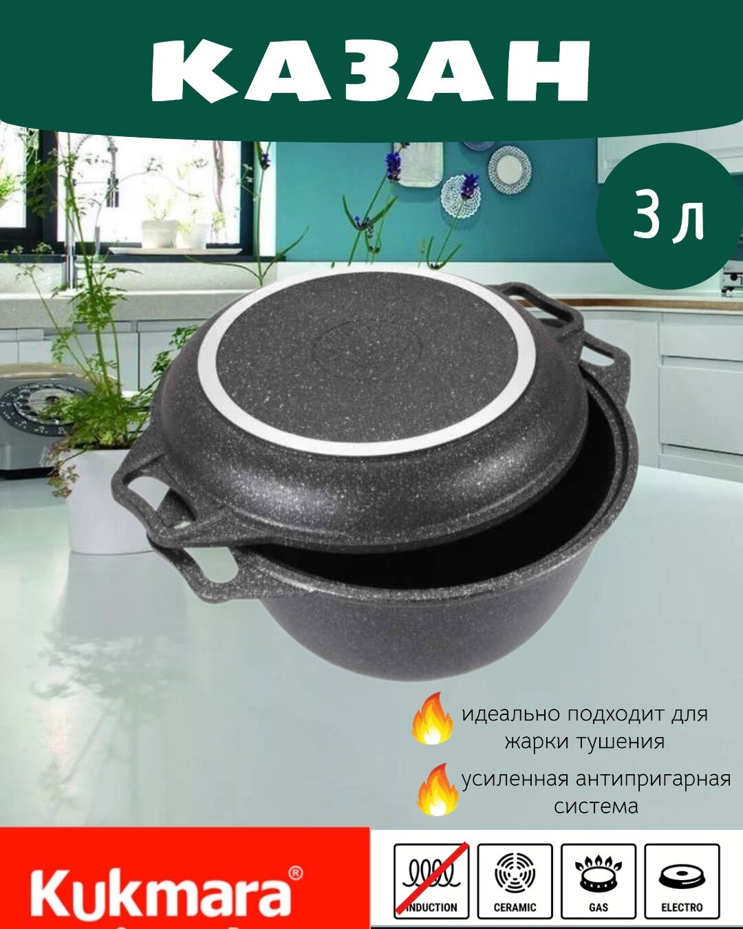 Казан Kukmara Темный мрамор кмт34а 3,0л крышка-сковорода