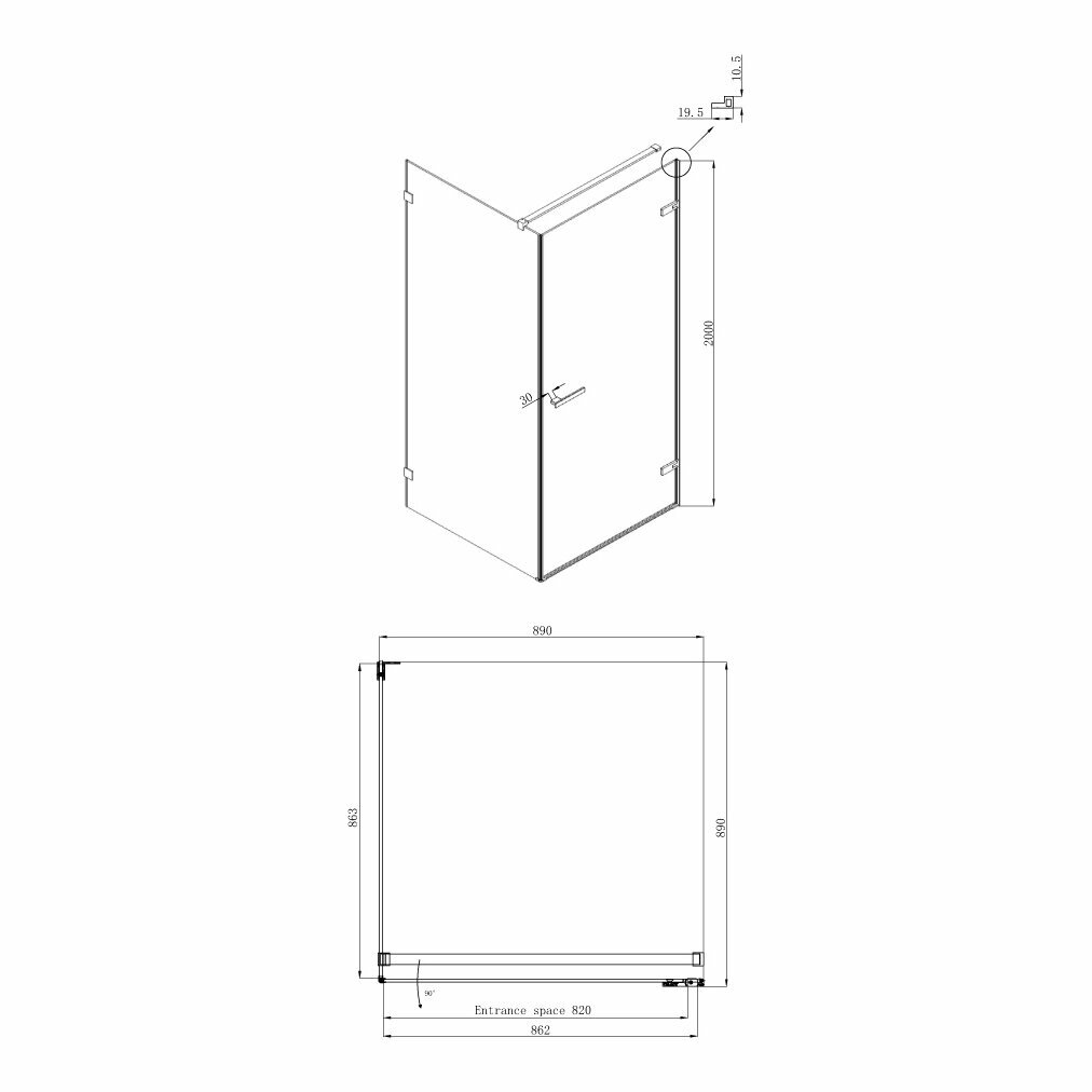 Душевой уголок 90х90 с трапом и распашной дверью Ambassador Abner 10011101L-ST3: левостороннее душевое ограждение из стекла 8 мм, профиль хром