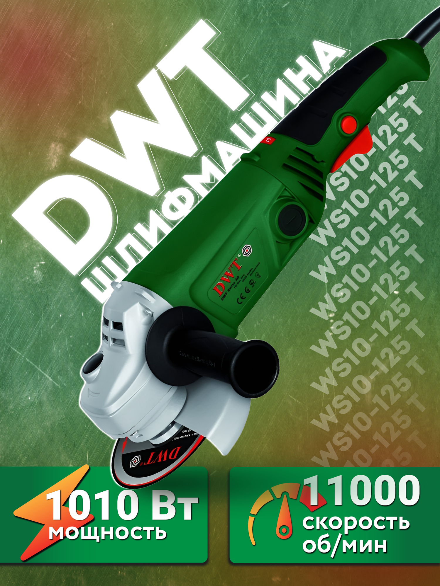 УШМ DWT WS10-125T, 1010Вт, 125мм, удлиненн.ручка, 11000 об/мин, коробка.