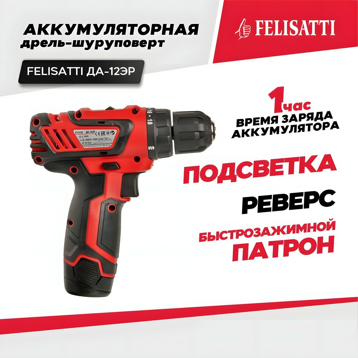 Дрель FELISATTI ДА-12 ЭР аккумуляторная