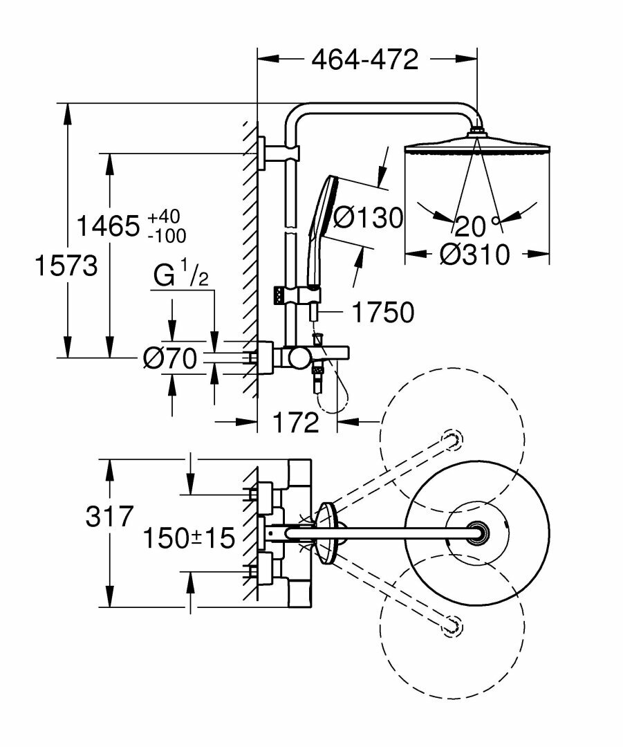 Душевая система с термостатом Grohe Rainshower SmartActive 310, излив 172 мм, 1 режим 26657000