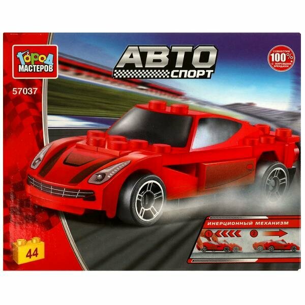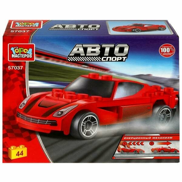 Купить Конструктор красный спорткар (с инерцией), 44 дет. Город мастеров