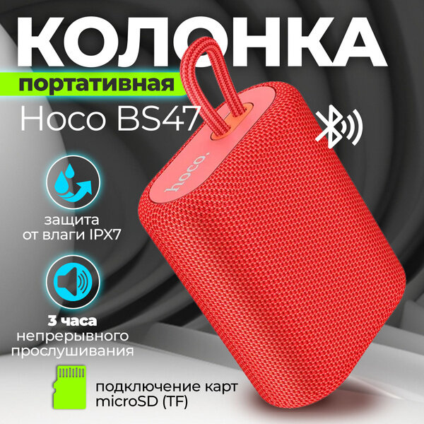 Колонка портативная HOCO BS47 красный (5W, microSD, USB, FM, BLUETOOTH, микроф., аккум.), HOCO электротовар