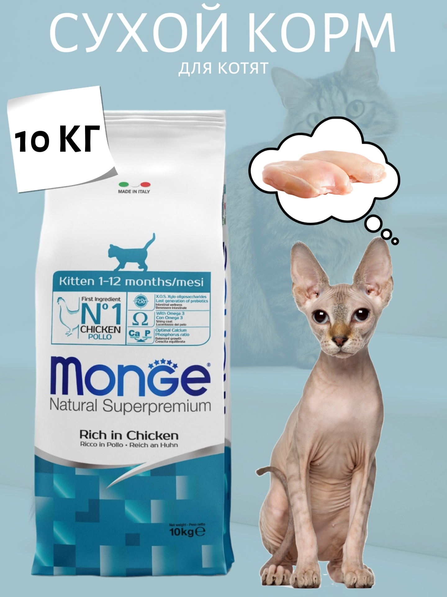 Сухой корм для котят Monge Natural Superpremium, с курицей 10 кг