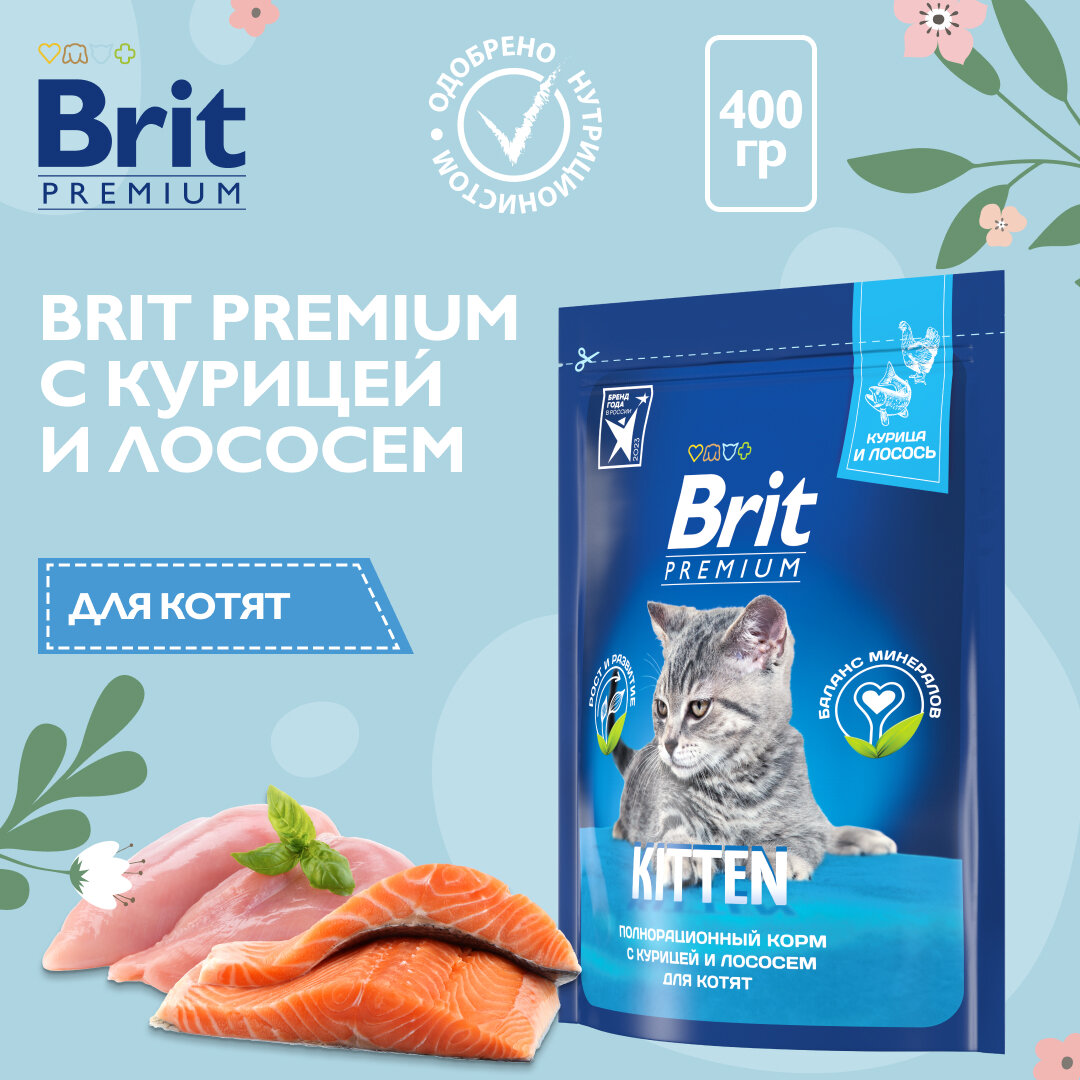 Сухой корм BRIT PREMIUM CAT KITTEN для котят с курицей и лососем (0,4 кг)