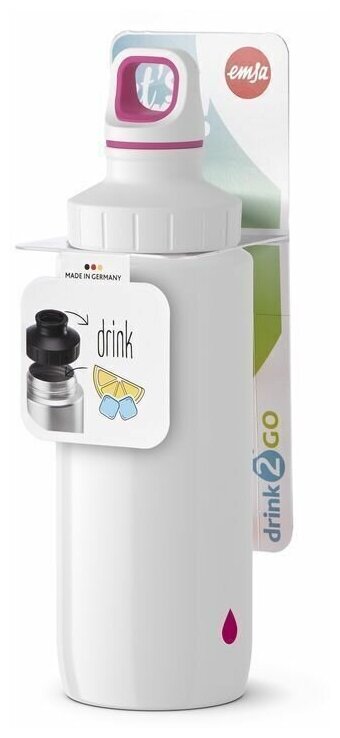 Бутылка для безалкогольных напитков, для воды EMSA Drink2Go Drop 600 мл белый/розовый