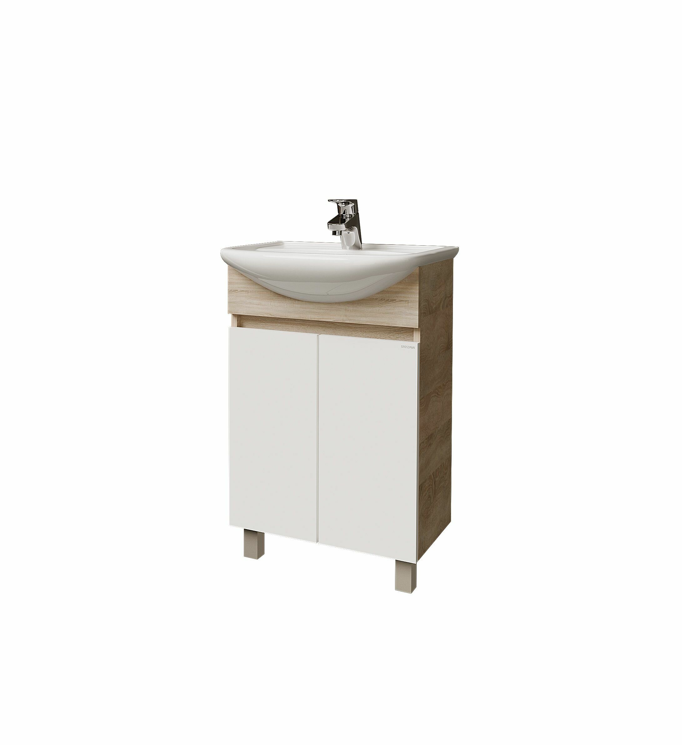 Тумба под раковину Grossman ПОЛО-55 см дуб сонома/белая 105501